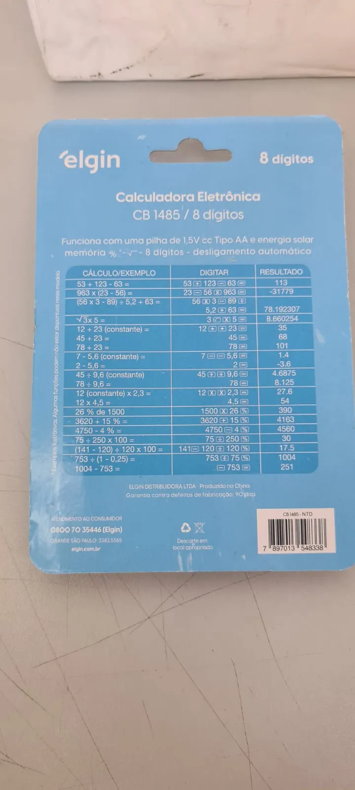 Tags: 7897013548338, Calculadora de Bolso Preta 8 Digitos Solar CB1485 Elgin, CB1485, elgin