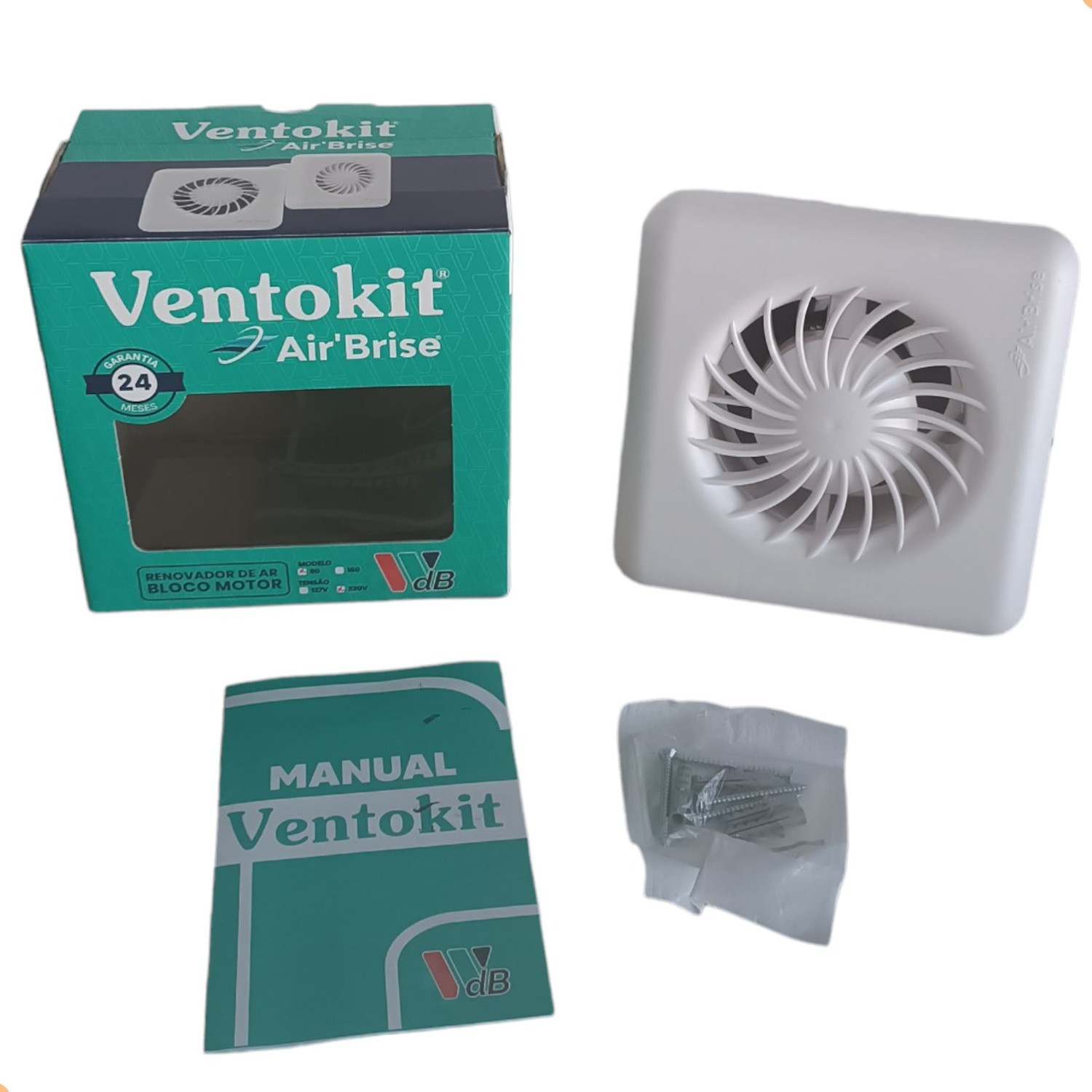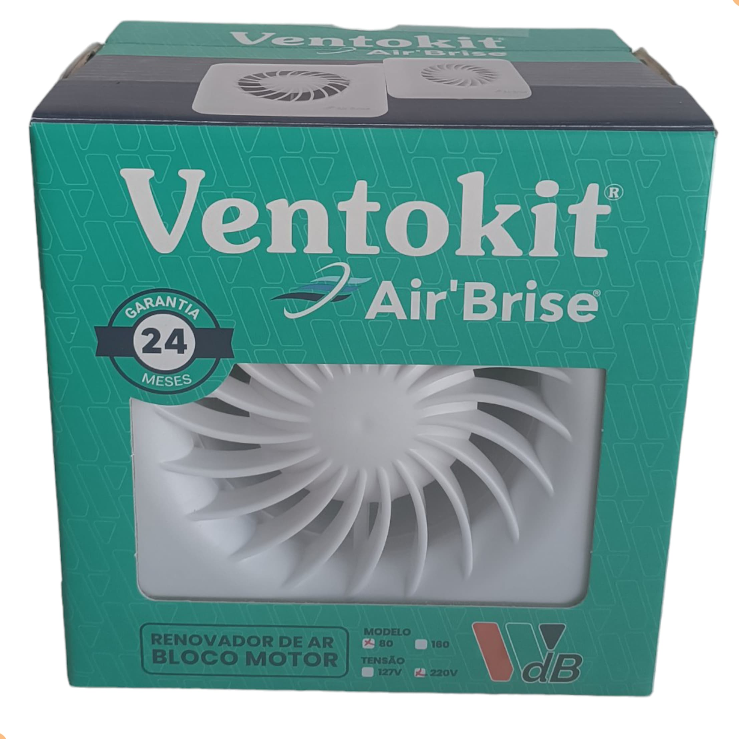 A linha Air Brise de exaustores da Ventokit, com seu design diferenciado, super silencioso, atende até 5mts de área, utiliza tubos de 100mm. Nas versões completo , com 20cm de tubo flex e venez auto fechante, e motor ( apenas o bloco do exaustor). Este modelo aqui este anúncio é a versão motor 220v.