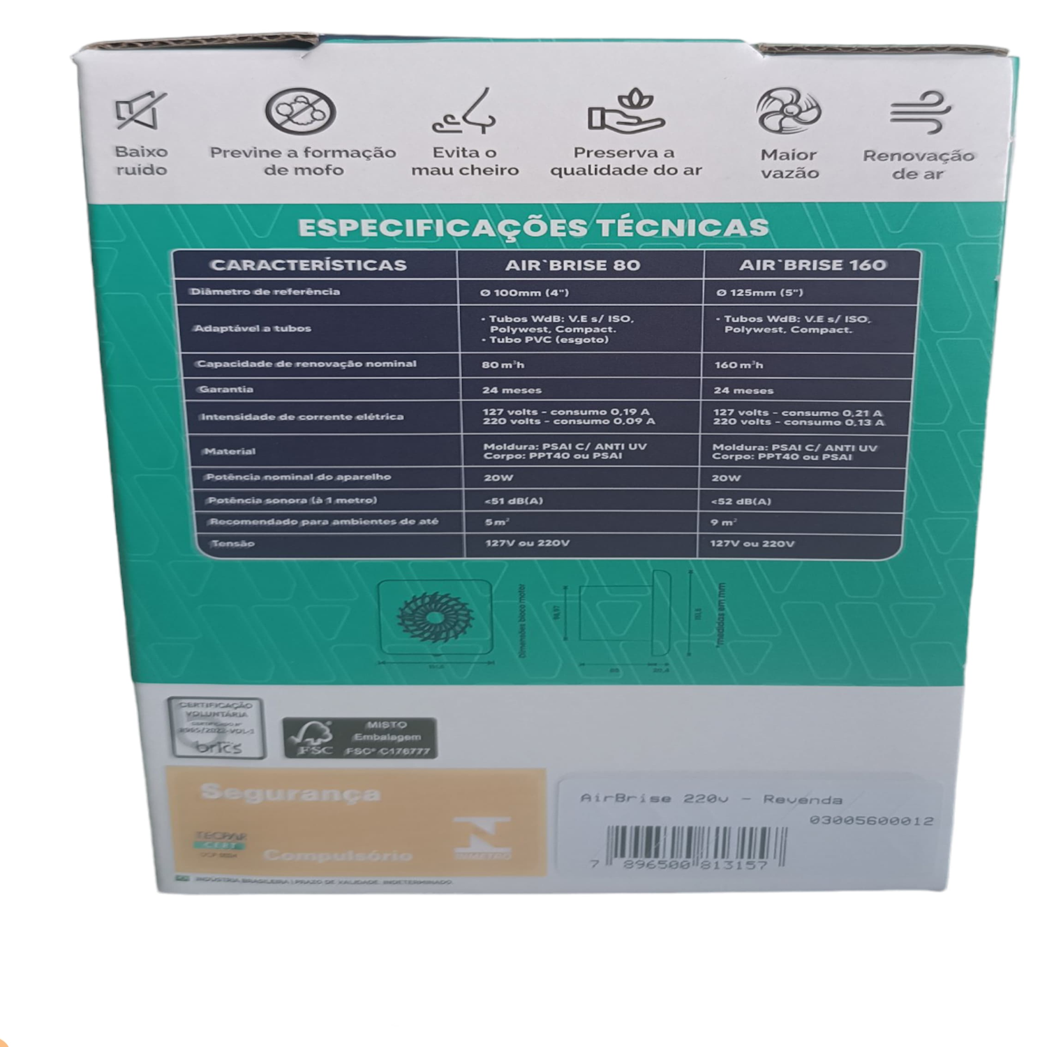 Exaustor Renovador De Ar Air’brise 80 Wdb 100mm P/ 5m² 220v